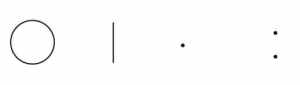 Um die neuen Eigenschaften der Ziffern zu betonen, können wir ihnen neue Bezeichnungen geben: Kreis, Gerade, Punkt und zwei Punkte.
