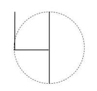 Untersuchen wir die Umgebung des dreiheitlichen Punktes: Aus der Sicht der Eins bedeutet das Erscheinen des zweiten Punktes die Hinzufügung einer weiteren Geraden, welche auf den neuen Punkt zeigt. Dieser Punkt muss zur Geraden gehören, da wir die Fortsetzung betonen, und diese zweite Gerade muss an den Grenzen der Umgebung des Punktes erscheinen, wo die Dreiheit schwächer wird, bis hin zu ihrer vollständigen Abnahme. Die Richtung der zweiten Gerade darf so wenig wie möglich der Richtung der ersten ähneln. Das Bild das sich ergibt, ähnelt der bekannten Form der Zahl vier.