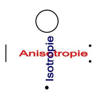 Zwischen der Geraden und den zwei Punkten besteht eine Ähnlichkeit, die Anisotropie. Auch der Kreis und der Punkt verfügen über ein gemeinsames Merkmal, die Isotropie.