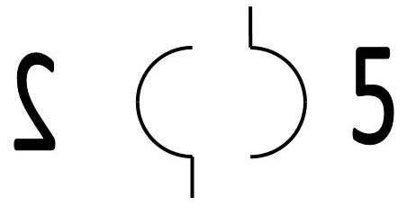 Die zeitgenössische Darstellung der Ziffern fünf und zwei entstammen dem Bild der starken Wechselwirkung, wo sich die Hälften der Null voneinander entfernt haben und sich mit einigen Teilstücken der Eins verbunden haben.