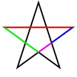 Ein weiteres schönes Beispiel für die Beziehung zwischen dem Teilstück und dem Ganzen ist der fünfzackige Stern, in dem sich alle Teilstücke, die aus der Kreuzung der Strahlen hervorgegangen sind, analog zur Zahl Φ verhalten. Ebenfalls kann der Stern nur mit einem Zirkel und einem Lineal, also mit dem Kreis und der Geraden, konstruiert werden.